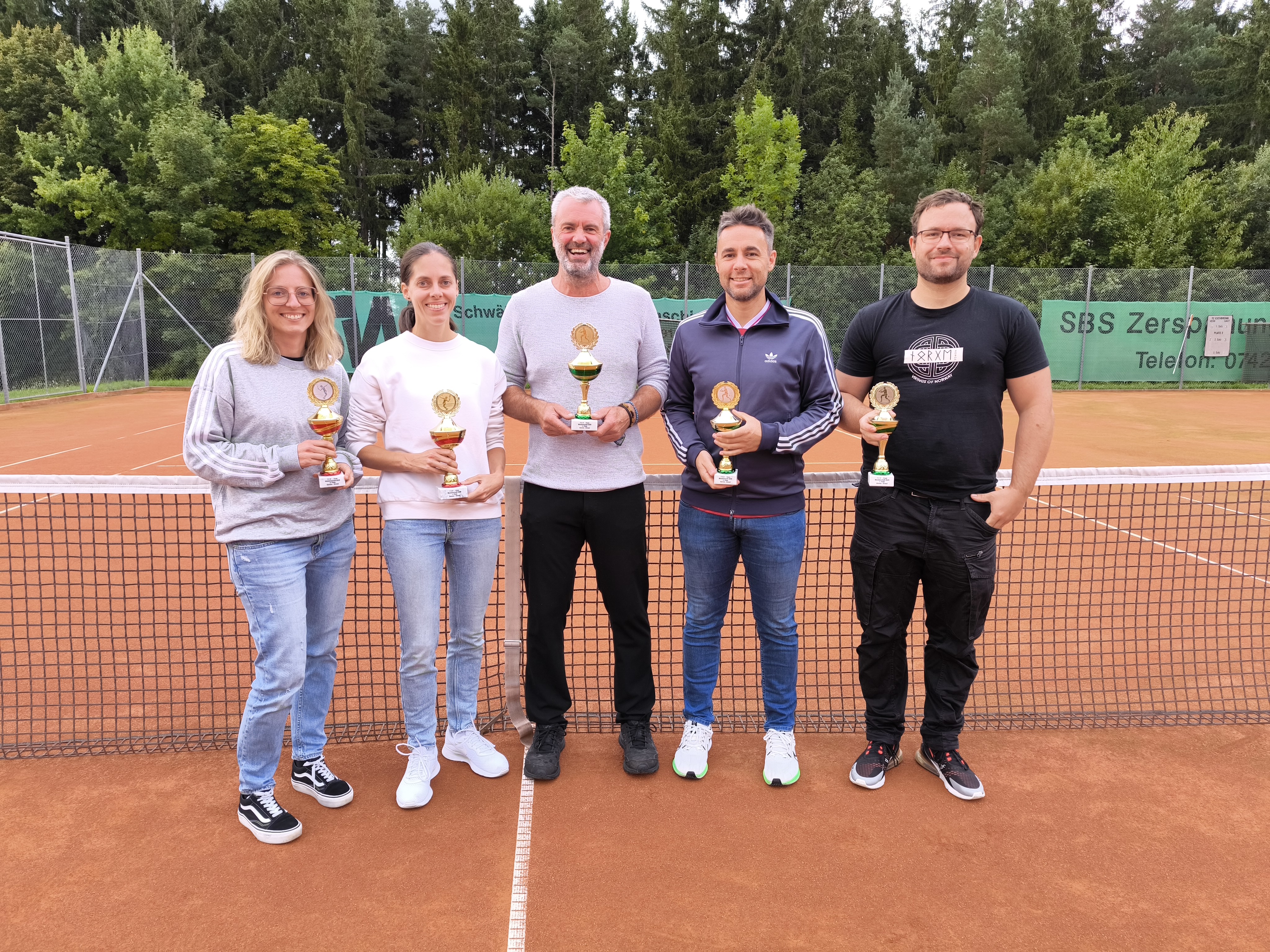 Am vergangenen Samstag ermittelte der TC Eschbronn seine neuen Clubmeister - und das bei bestem Tenniswetter, hochklassigen Spielen und großartiger Stimmung auf der Anlage. Bei den Damen sicherte sich Linda Becker zum dritten Mal in Folge den Titel. In einem spannenden Endspiel gegen Miriam Storz - wie schon im Vorjahr ihre Finalgegnerin - setzte sie sich mit 6:3, 6:3 durch. Das Match war geprägt von langen Ballwechseln, viel Kampfgeist und sehenswertem Tennis. Auch das Herrenfinale bot Spannung und Klasse: Guido Fehrenbacher holte sich mit einem 6:4, 6:4-Erfolg über Frederic Rapp den Titel. Beide Spieler lieferten sich ein Duell auf Augenhöhe mit langen Ballwechseln und intensiven Grundlinienduellen. Im kleinen Finale der Damen behielt Patricia Link gegen Tamara Schuler knapp die Oberhand. Nach einem starken ersten Satz, einem Comeback ihrer Gegnerin und einem nervenstarken Match-Tiebreak setzte sie sich mit 6:0, 4:6, 10:4 durch. Bei den Herren sicherte sich Christian Staudacher mit einem souveränen 6:0, 6:2 gegen Carsten Bolte den dritten Platz. Nach den Spielen folgte die feierliche Siegerehrung, bei der alle Finalisten für ihre Leistungen geehrt wurden. Den sportlichen Teil des Tages rundete ein gemeinsames Spanferkel- und Pizzaessen mit zahlreichen Vereinsmitgliedern und Zuschauern ab - ein gelungener Abschluss für ein tolles Finalwochenende.